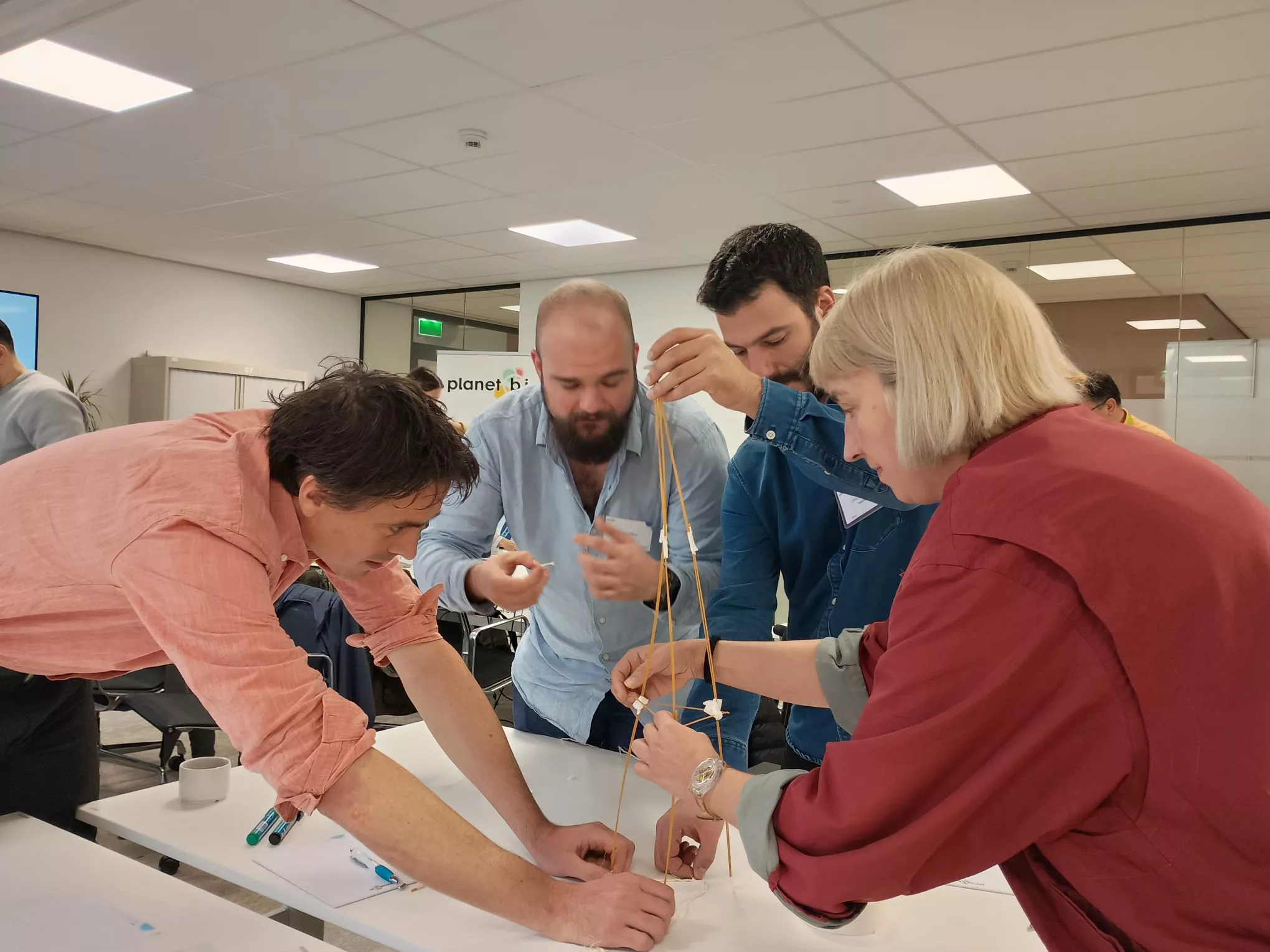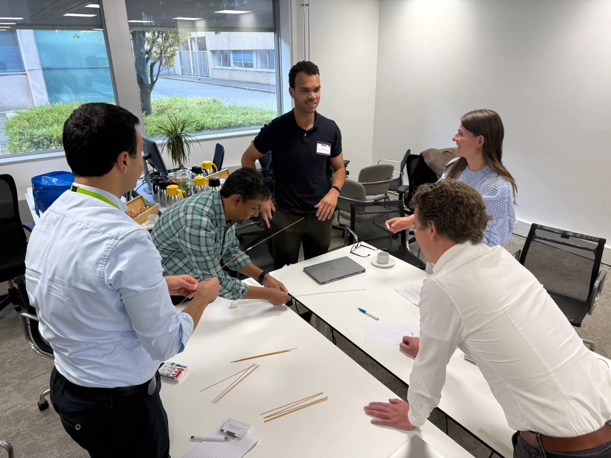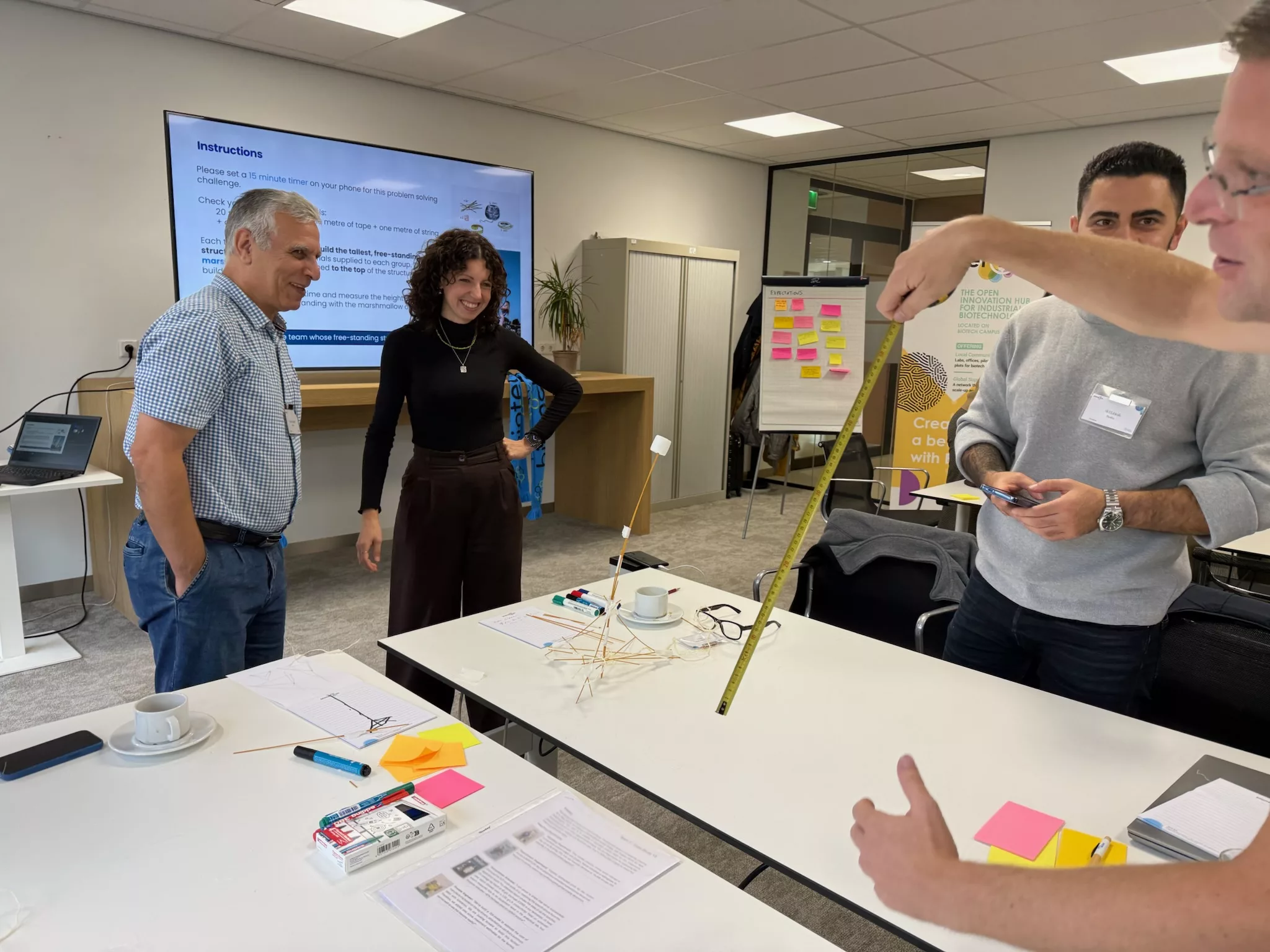 Before diving into the technical sessions, teams took on a creative engineering exercise: the Spaghetti Challenge. Armed with 20 spaghetti sticks, one meter of tape, one meter of string, and a marshmallow, they had to build the tallest standing tower with the marshmallow on top. The winning team’s 70 cm structure towered above the rest, literally and figuratively. Key message: trial and error on a small scale, so you can find what works early on. A great start to an energetic day.
